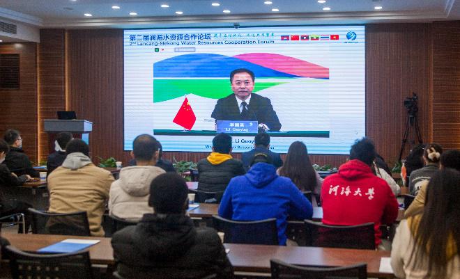 12月7日,以“携手应对挑战,促进共同繁荣”为主题的第二届澜湄水资源合作论坛在北京开幕,河海大学组织师生代表50人以视频方式线下观看论坛开幕式。会议期间,中国水利部部长李国英出席开幕式并致词。