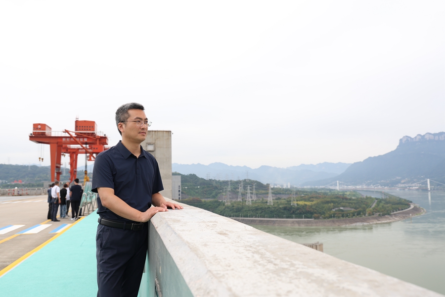 澜湄水资源合作中心主任周智伟参观三峡大坝。[长江委 供图]