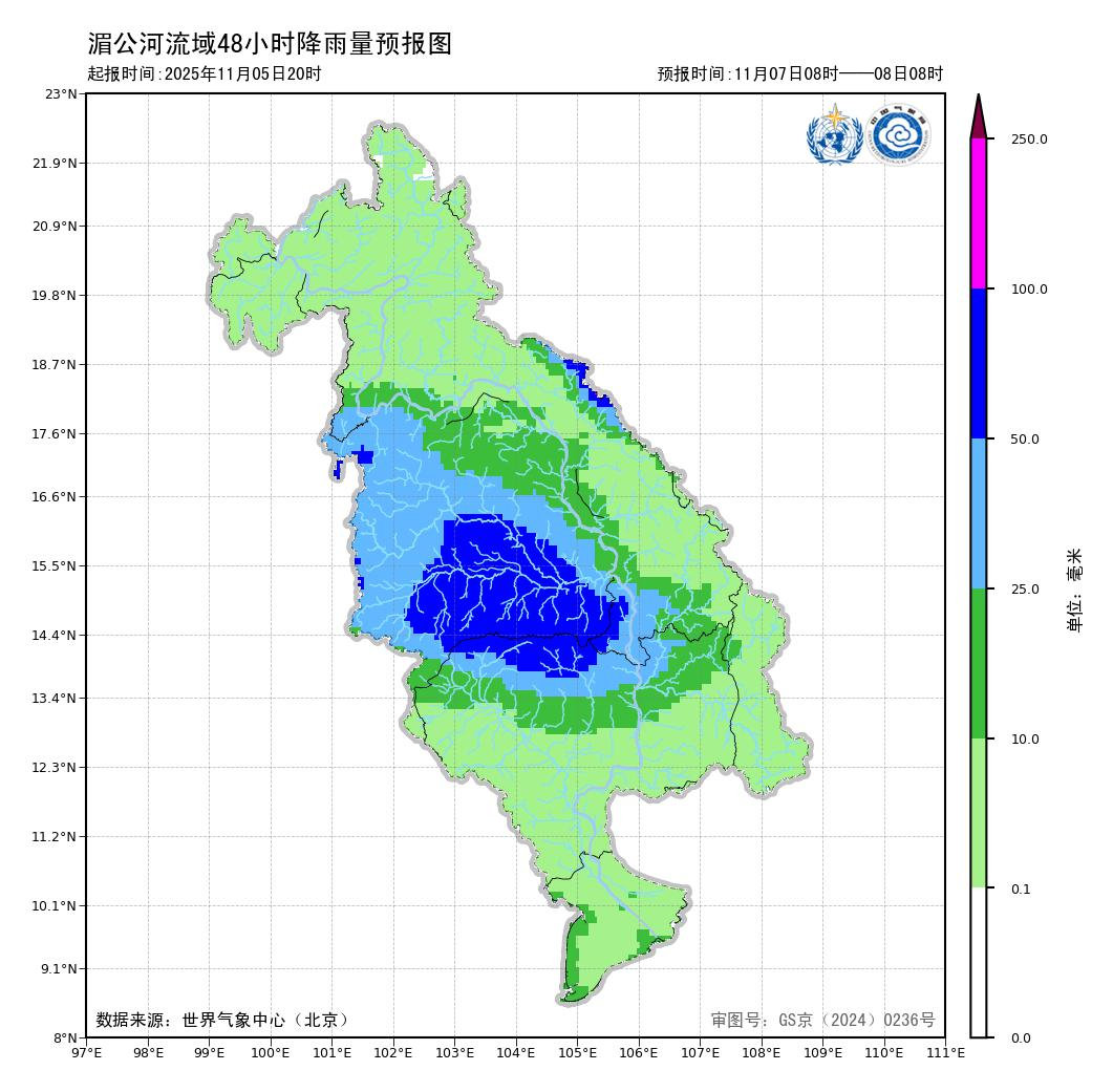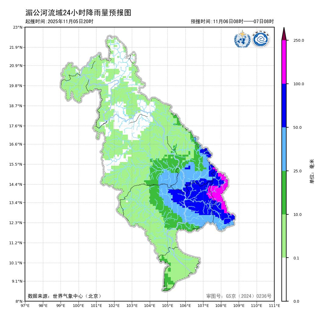 湄公河流域台风暴雨预测预警信息(2025年11月6日)